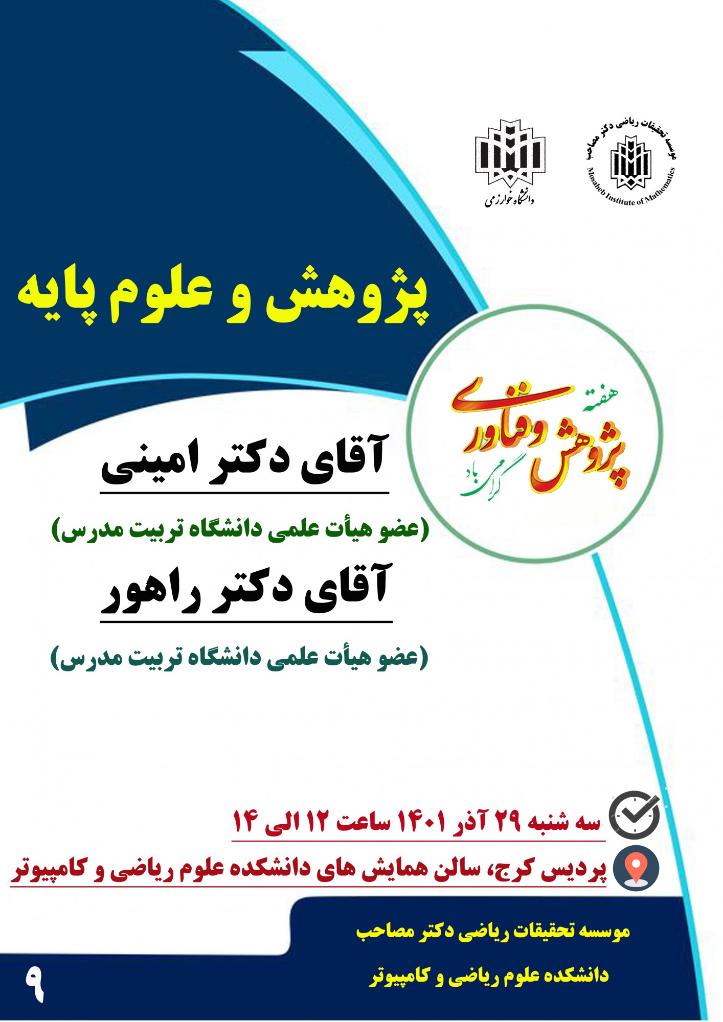 مکان برگزاری: واحد کرج، سالن همایش های دانشکده علوم ریاضی و کامپیوتر |
