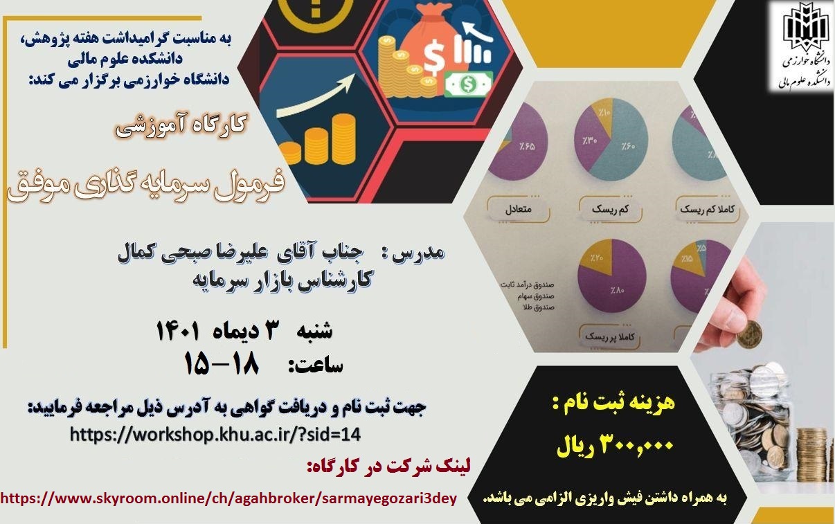 مکان برگزاری: دانشکده علوم مالی، سالن پیامبر اعظم(ص) |