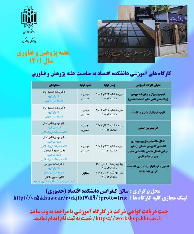 مکان برگزاری: سالن کنفرانس دانشکده اقتصاد |