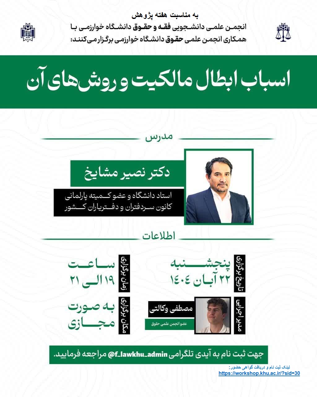 براى ثبت نام در هر كدام از كارگاهها، برای بار اول ابتدا بايستی از طريق گزينه ثبت نام در سامانه در منوی اصلی سامانه، فرم ثبت نام را تکمیل کنيد. پس از ورود به سامانه و مراجعه به صفحه حاضر، كافى است کارگاه موردنظر را انتخاب کرده و برای پرداخت هزينه ها به صورتحساب خود مراجعه نماييد. مدير پايگاه بعد از بررسی های لازم ثبت نام شما را تاييد خواهد كرد.